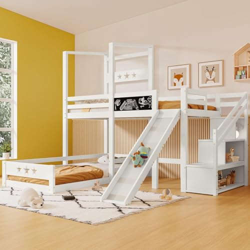 KOMHTOM Superposé Lit en Bois avec Clôture Sécurité