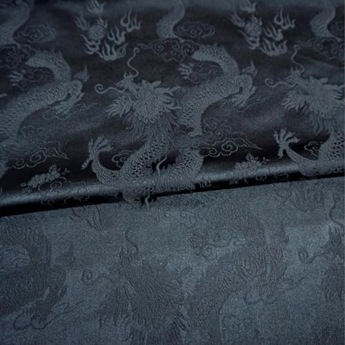 BINTING Satin Brocade Soie Jacquard Tissu Noir Grand Dragon...