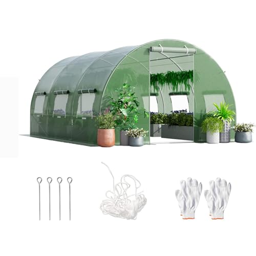RELAX4LIFE Serre de Jardin 18m² Tunnel avec 2 Portes, 10 Fen...