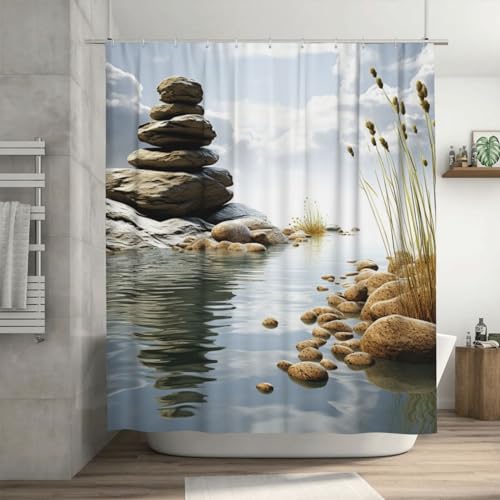 NONHAI Pierres naturelles – Rideau de douche avec 12 crochet...