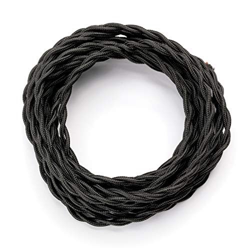 Câble alimentation textile rétro, 5m2, 2x0,75mm, tissu noir