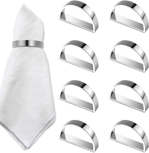 Fyearfly Ronds Serviétes Argentés 8 Pièces Élégantes