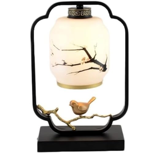AMYSTY Lamp de Chevet Sculptée Fleur & Oiseau Verre