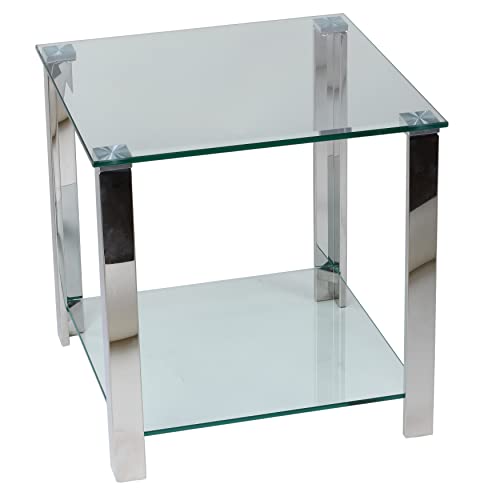 Cortesi Home Table extrémité verre double étagère argenté 51...