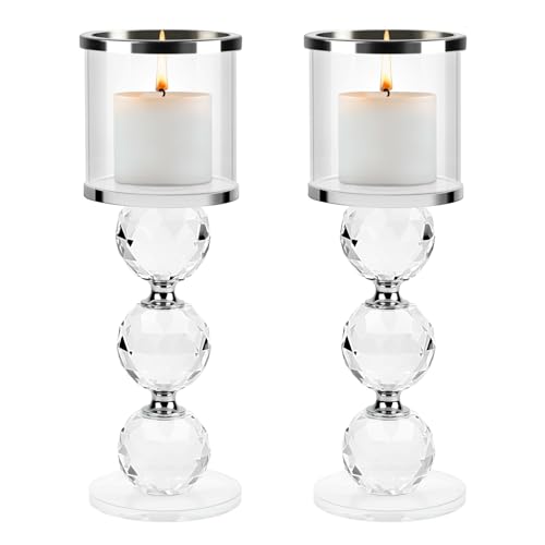 SWAWIS Bougeoir Piliers en Cristal Transparent, 2Pcs Chandel...