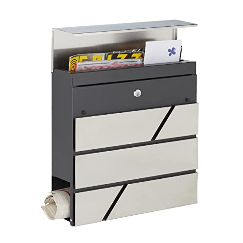 Relaxdays Boîte aux Lettres avec Porte-journaux, Acier (Inox...