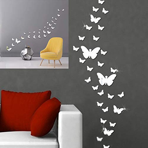 Stickers Muraux Miroir Papillon Argent 30 Pièces