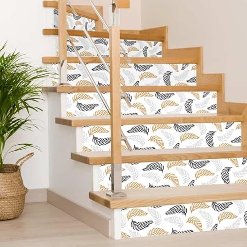 Contremarches 4x1m Motifs Birdy Plumes Noir Argent Doré Esca...