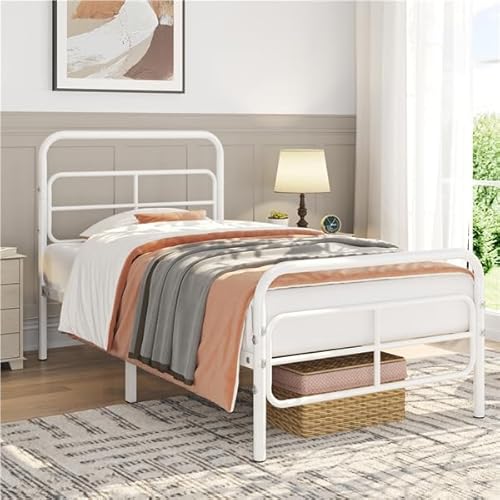 Cadre Lit Métal 90x190cm Moderne Lattes Blanc