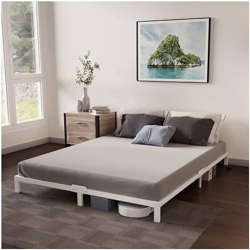 Structure Robuste - Ce cadre de lit en métal blanc offre une...