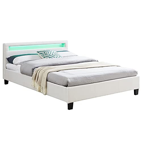 IDEMX Lit LED Double 140x190cm Tissu Blanc