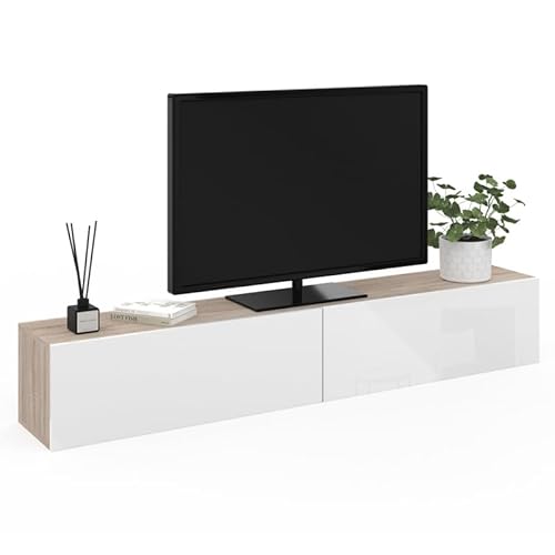 Découvrez le meuble TV ELIO mural 2 portes bois et blanc au...