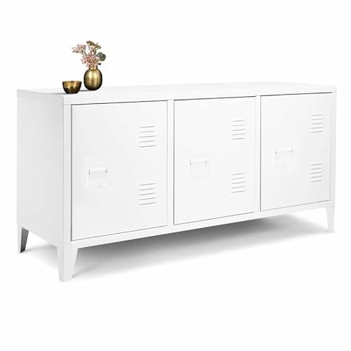 IDMarket Bas 113cm Ester 3 Portes Métal Blanc