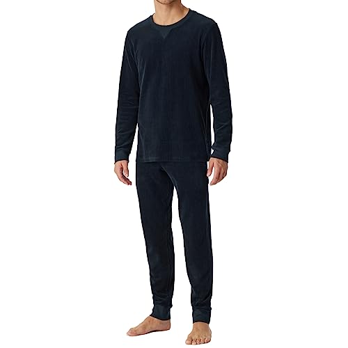 Schiesser Pyjama Long Coton Velours Bleu Nuit 54