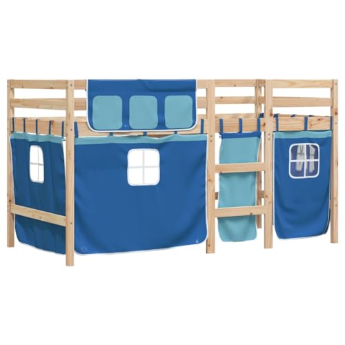 Lit Mezzanine Rangement Enfants Bleu 90x190cm Bois Pin Massi...