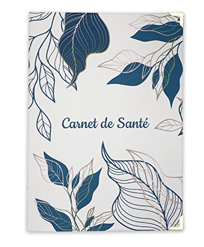 Protège carnet santé adulé/enf. Feuille dorée bleu canard