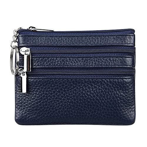 Porte-monnaie cuir véritable femme bleu marine One Size