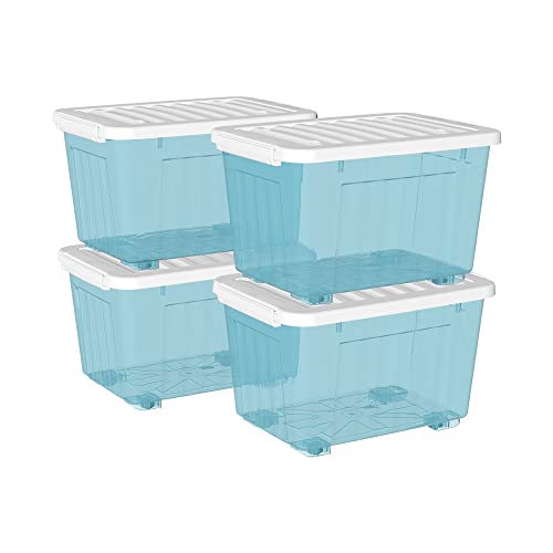 Cetomo 4 boîtes de rangement bleu clair, durables et empilab...