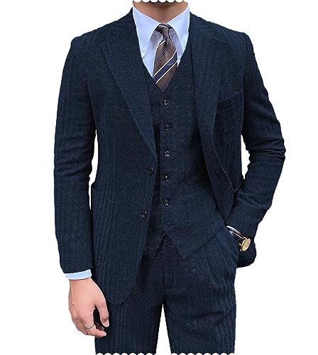 Costume tweed 3 pièces formel ajusté Smoking bleu marine XXL