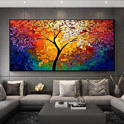 Arbre de vie moderne toile intissee rouge et bleu 60x120cm
