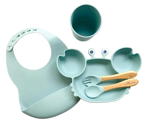 Assiette en silicone, couverts en bois de hêtre