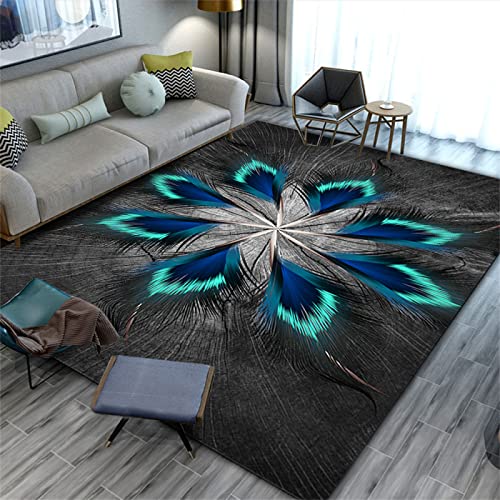 Rug Plumes Modernes Tapis de Couloir Bleu Noir Résistant à l...
