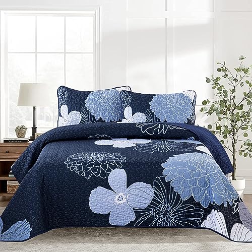 Bettlage Coussinet 240x260 cm, bleu marine, floral, matelass...