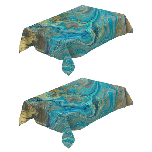 Nappe Rectangulaire Texture Marbre Bleu Vert 140x220 cm Anti...
