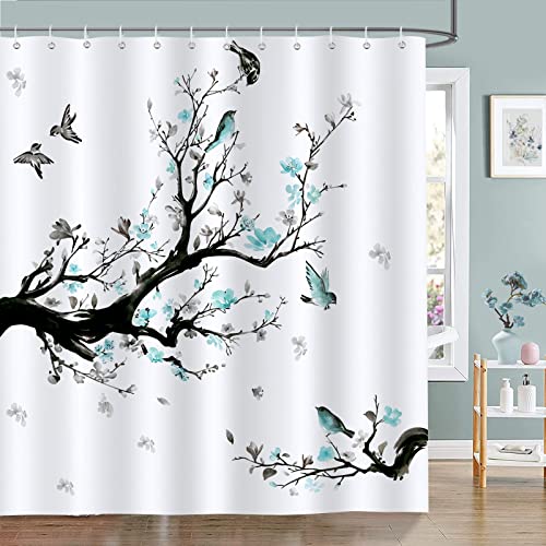 Bonhause Rideau de Douche Fleur Bleue Anti Moisissure Imperm...