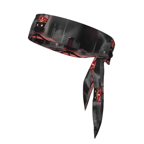 Bandeau de sport double face à motif chemin de fer rouge pou...