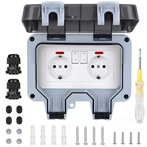 Prise étanche murale IP66, interrupteur, voyant lumineux, pr...