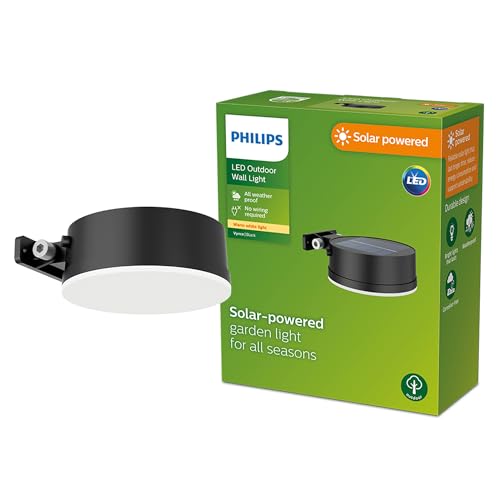 Applique murale solaire noire, ronde, 1,5W, 2700K