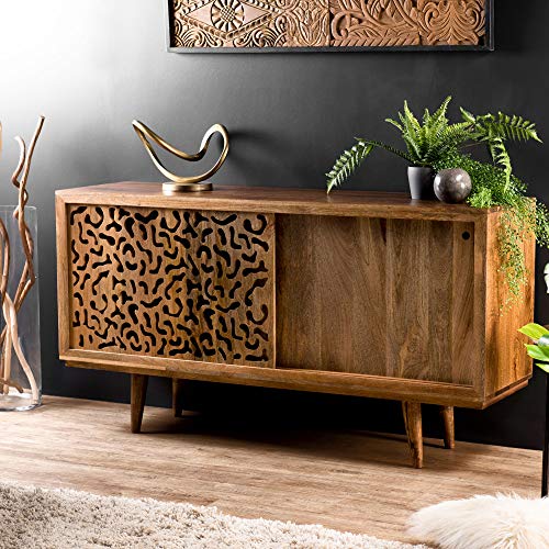 Buffet Manguier 160x45cm 2 portes coulissantes 1 étagère Jai...