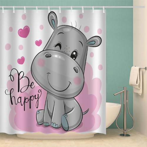 Rideau de Douche Hippopotame 180x200 Lavable Anti Moisissure...