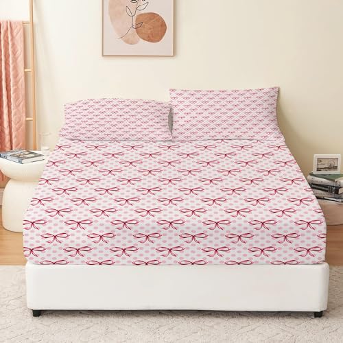 Noeud à Pois Rose Housse Lavable Microfibre 90x190 cm