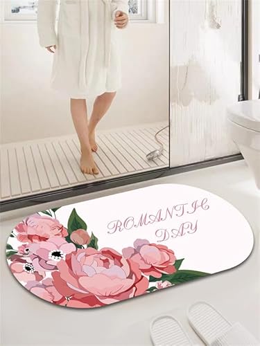 Tapis de Bain Ovale Minimaliste Imprimé Floral Lavable Machi...