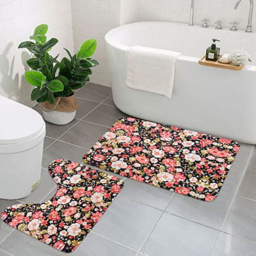 Tapis de bain floral lavable, antidérapant doux et absorbant