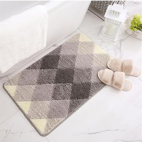 Tapis Carreaux Géométrique Lavable Stylé et Doux pour Bain