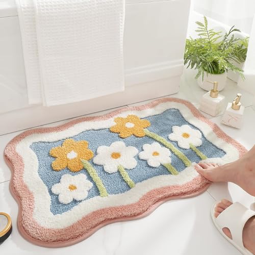 Tyrafry Joli Tapis de Bain à Fleurs Doux et Moelleux Séchant...
