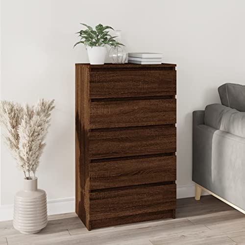 Commode chêne marron 60 x 36 x 103 cm étagères placard intér...