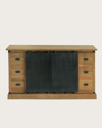 UNIQKA - Industryal - Buffet industriel en teck massif et po...
