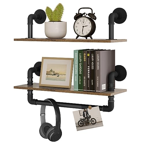 Étagère murale flottante industrielle, 60x20 cm marron rusti...