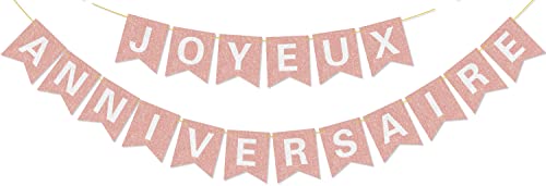 Décorations de bannière Joyeux Anniversaire en or rose - Ban...
