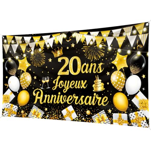 20 Ans Bannière Joyeux Anniversaire Noir Or 200 x 110cm 20 A...