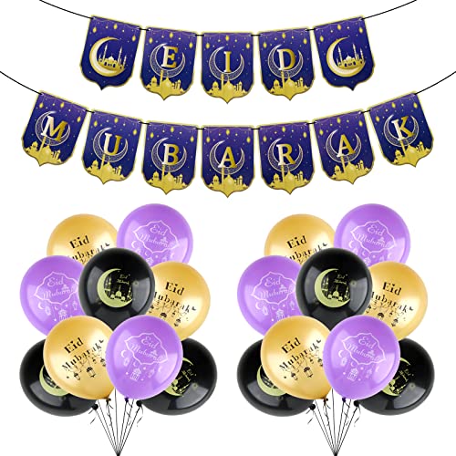 Décoration Eid Mubarak 24 Ballons en Latex plus Banderole Ei...
