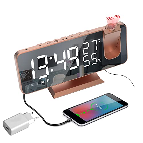 Radio Reveil Projection Plafond, 180° Projecteur Réveil Radi...