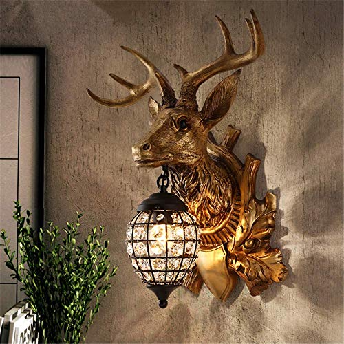 Murale Intérieur Vintage Or Resine Cerf Lampe E27