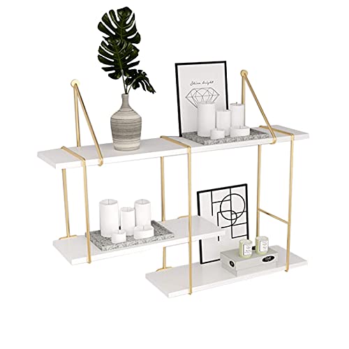 MFLAS Étagères murales flottantes bois-métal, blanc-or