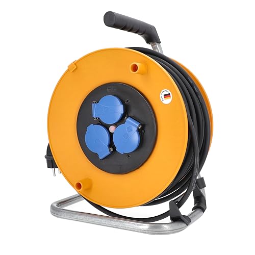 Enrouleur câble Schwabe 25m, 3 prises NF 230V/16A, IP44, ora...