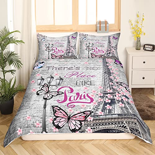 Tour Eiffel Fleur Cerisier Housse de Couette Enfants Rose Sa...
